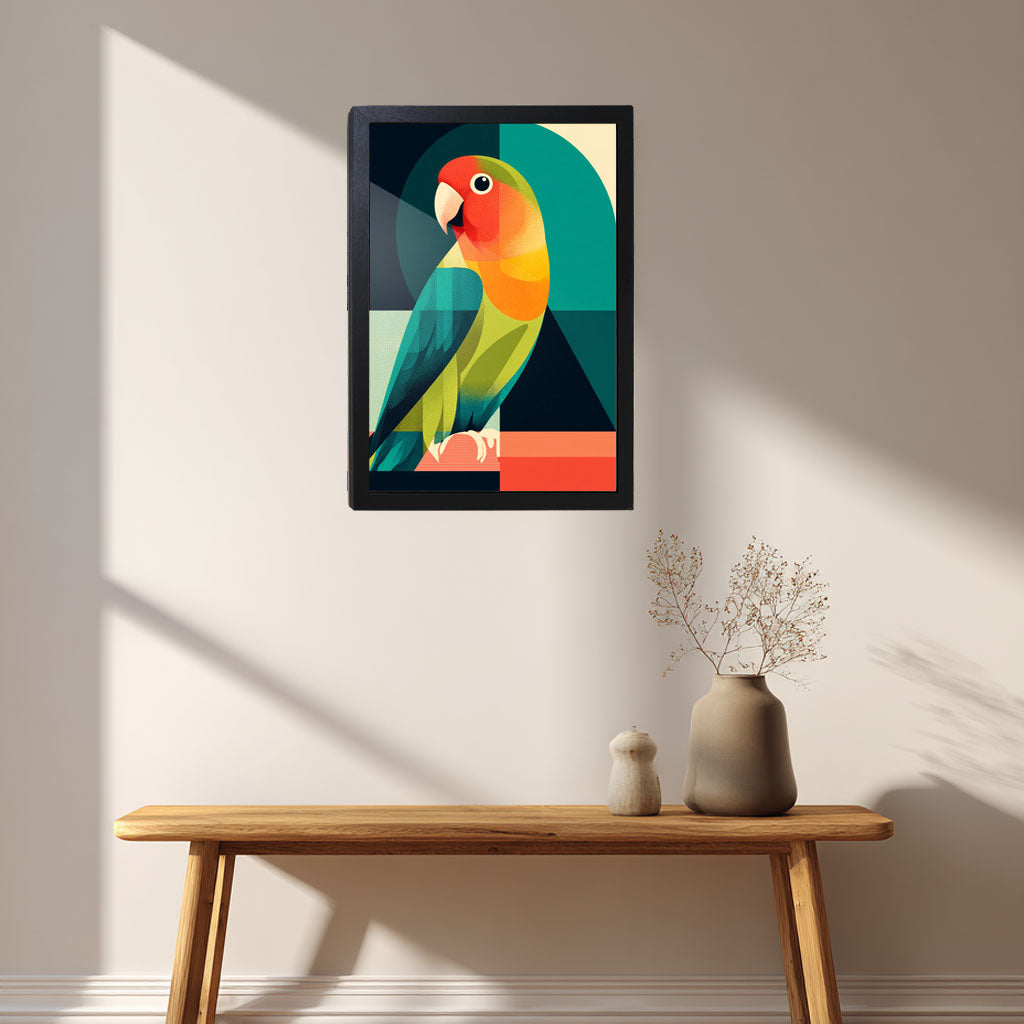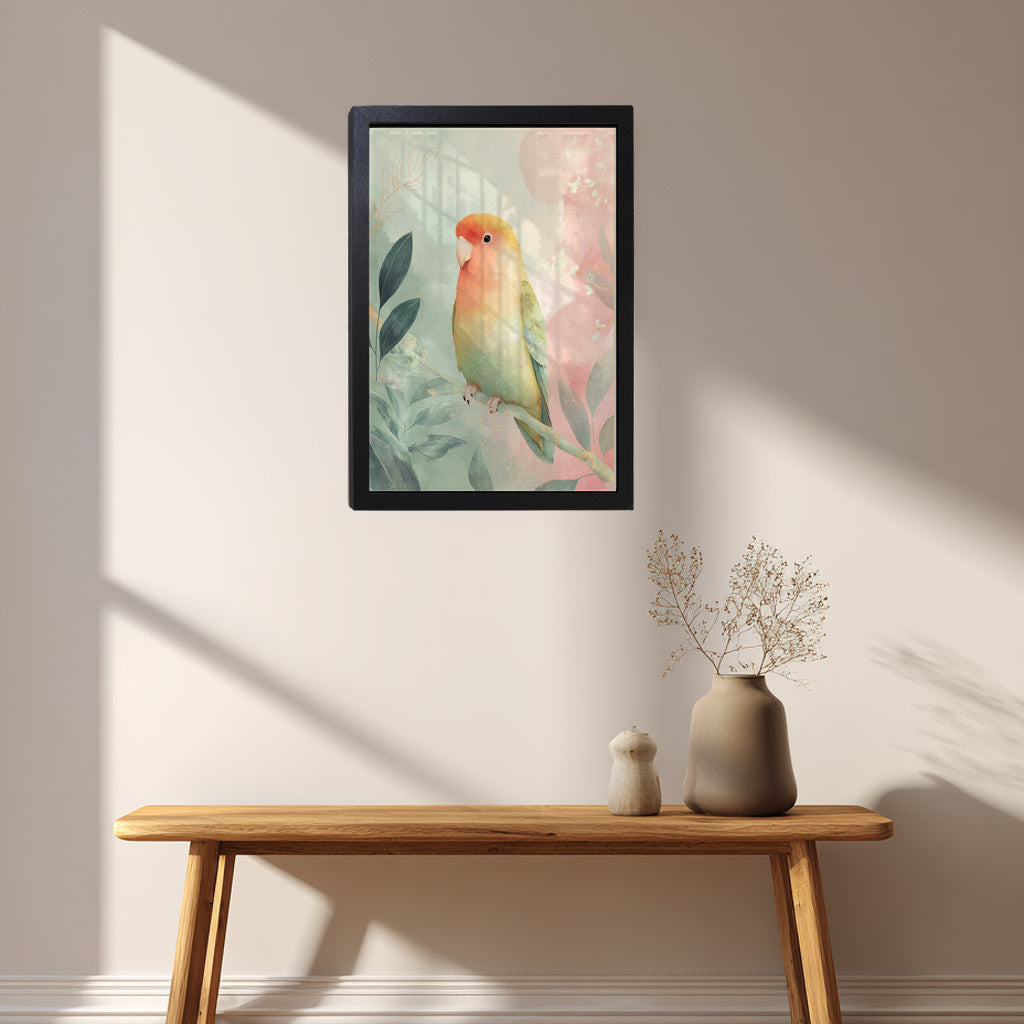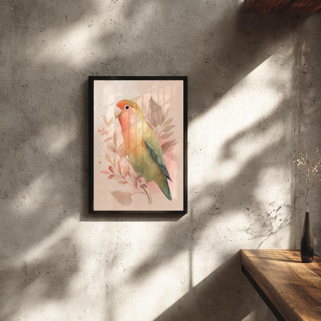 フレーム付きアートポスター 動物・アニマルイラスト インコ ウォールアート 壁掛け おしゃれ リビングに