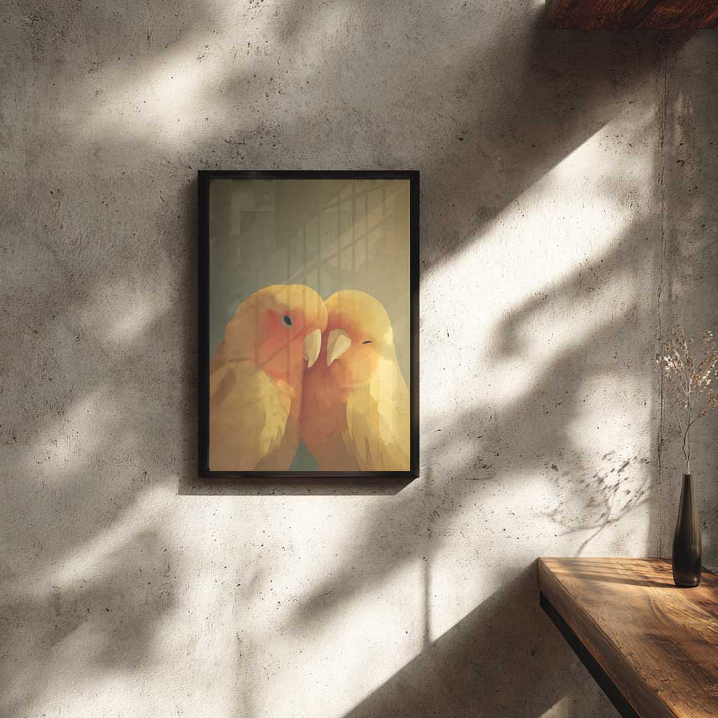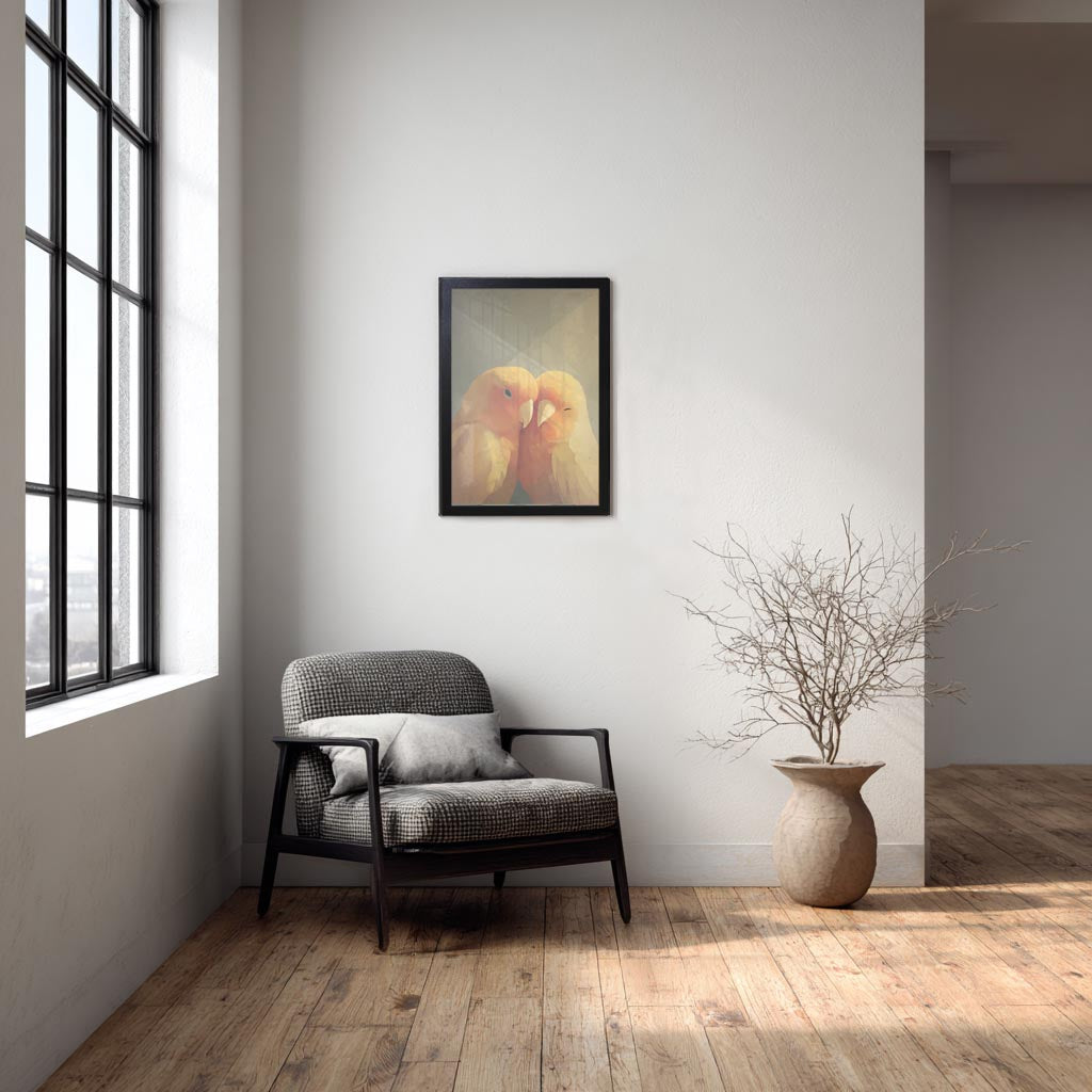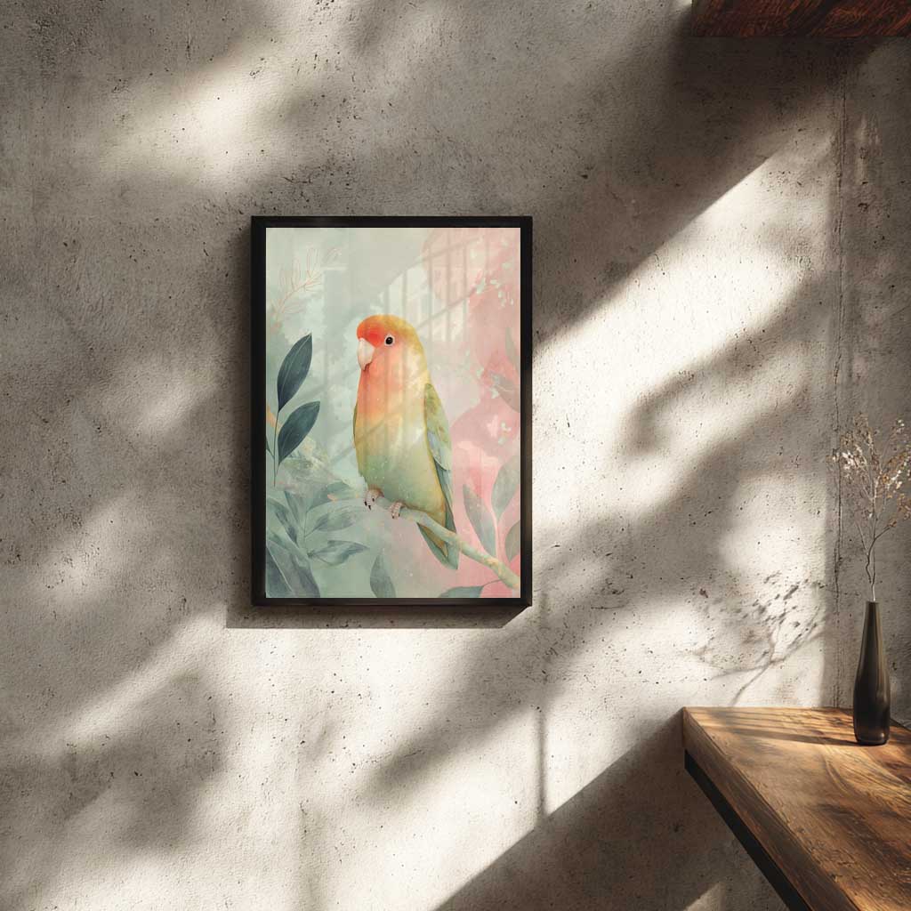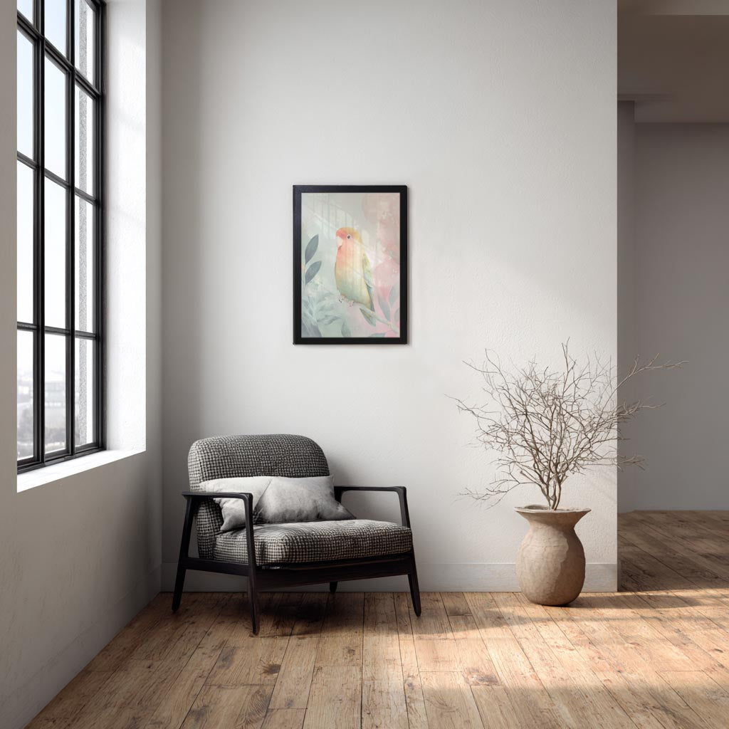 フレーム付きアートポスター 動物・アニマルイラスト インコ ウォールアート 壁掛け おしゃれ リビングに